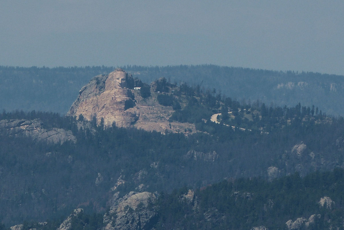 Construction on Crazy Horse Monument has been underway for over 60 years in the Black Hills of South Dakota. A Night Blast is two minutes you will not forget. We have a good VIDEO on the Crazy Horse page. Take your school age grandchildren. When they have grandchildren of their own, they might take them to see it finished. When completed, it will be one of the wonders of the world, comparable to the Egyptian pyramids and sphinx. This picture was taken from Mt. Coolidge, over 9 miles away.