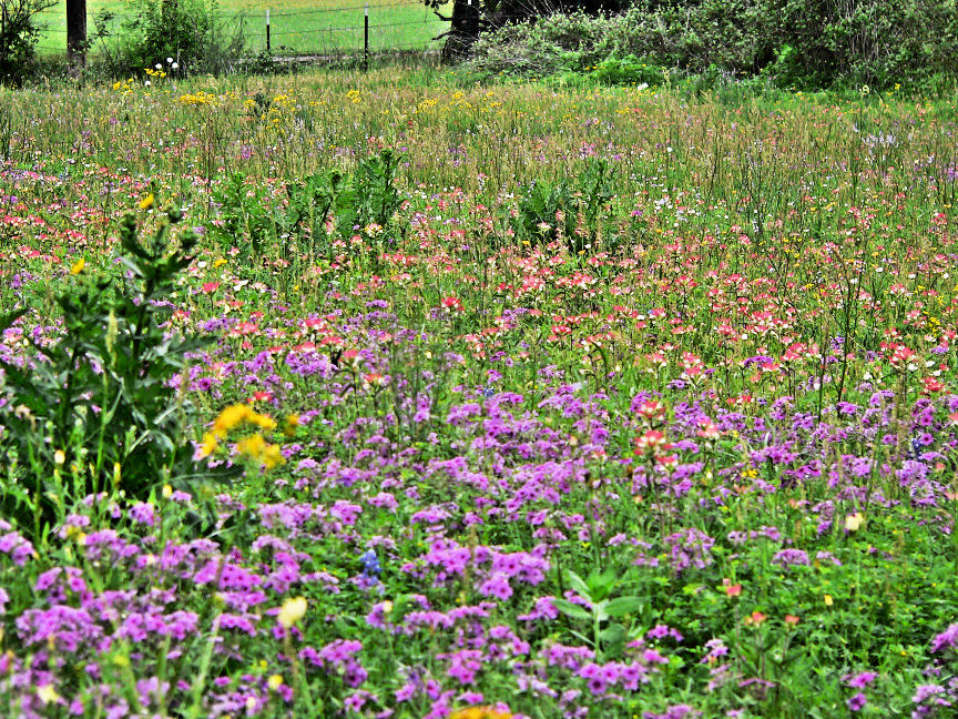 Every part of the roadsides of the Hill Country of Texas are alive with wildflowers. Flowers come up in the early spring and many last well into a hot, dry summer.