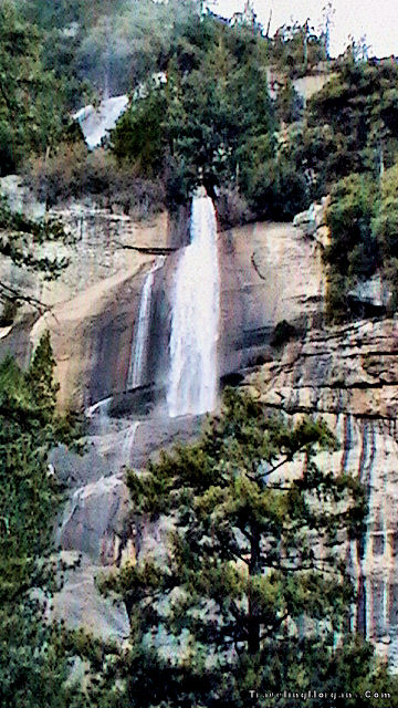 The pictures at right are from the meadows. At the far right is a zoom to the upper falls.