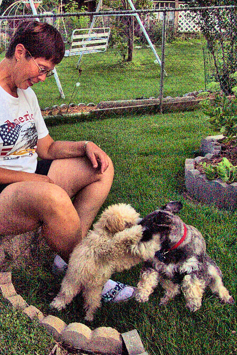 Roscoe, our Schnuazer puppy, was a year old and becoming a coach potato. I needed a lot of rest and could not be very active. Our solution was us to get another dog to keep him on his toes. In the same pet shop where we bought Roscoe, we found a small but very active white bundle of energy and hair. At two pounds six ounces she was a pound of hair, a pound of attitude with a few ounces of dog in there somewhere.