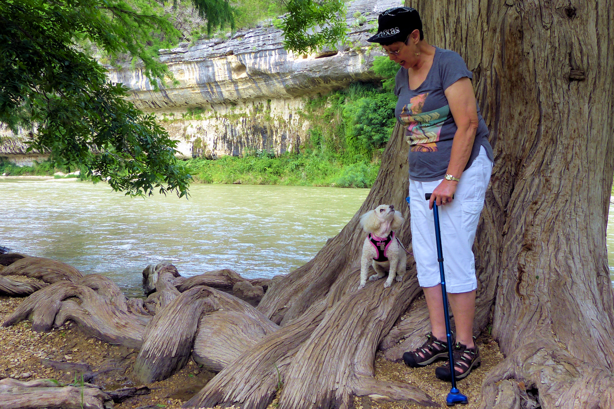 Roscoe&Harpo in Guadalupe River State Park Hill Country of TX 2009.