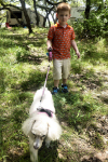 Harpo found an admirer in young Samantha on Sheep Mountain Table, Badlands National Park South Unit in SD. 2005.