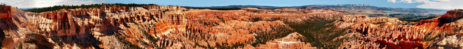Bryce Point in Bryce Canyon National Park is an incredible 270 degree view. Picture above is the whole view. It is actually 55 photographs, stitched together by AutoStitch, and straightened. Click the picture for a larger version or perhaps you will want to see a HUGE VERSION. We consider this view the second best view we saw in our travels.