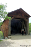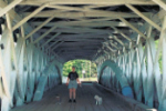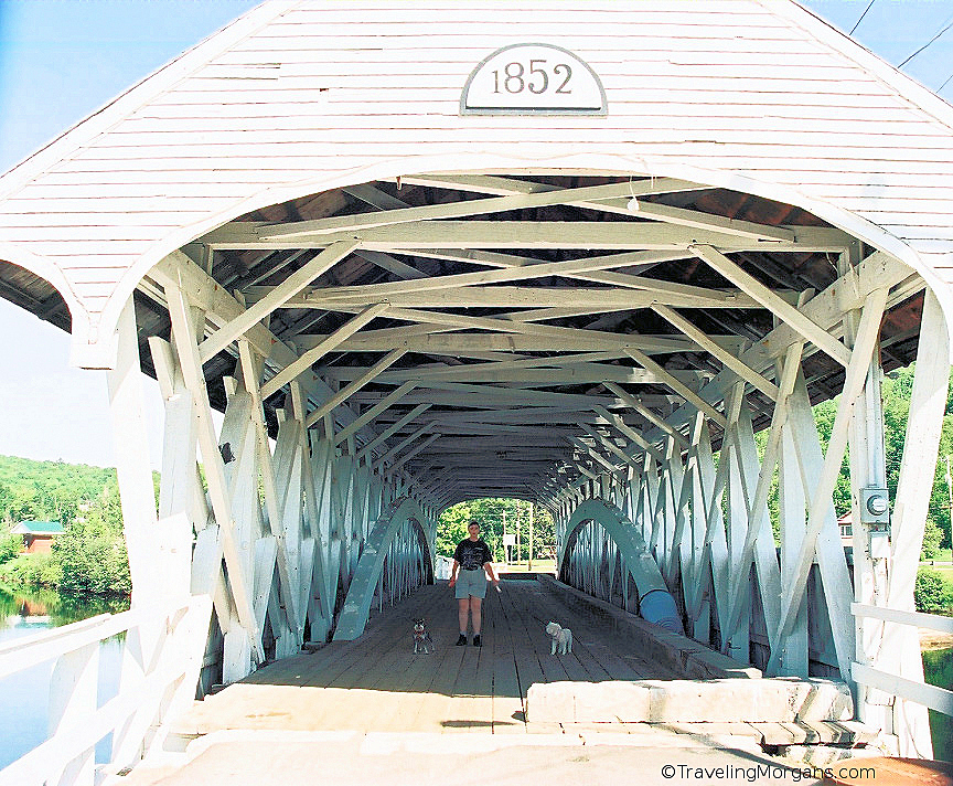 Roscoe and Harpo with Phyllis on a covered bridge near Gorham NH 2008.