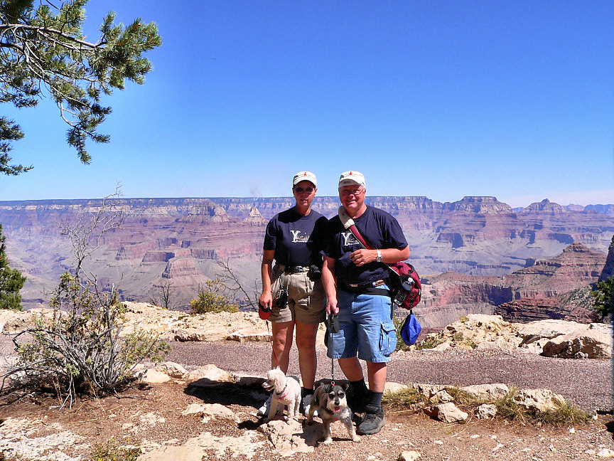 Roscoe and Harpo with Phyllis and Larry, at Maricopa Point (East Drive South Rim) Grand Canyon National Park AZ 2005.
