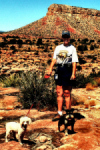 Roscoe and Harpo with Phyllis in front of Vulcan's Throne in the rarely visited Torroweap(aka Tuweep) section of Grand Canyon National Park (North Rim) 2005.