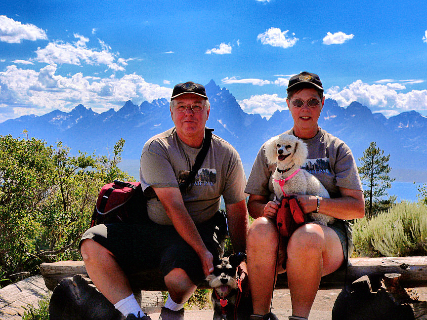 Roscoe and Harpo with Phyllis and Larry in Grand Teton National Park, WY 2005. Click any picture for a larger version.