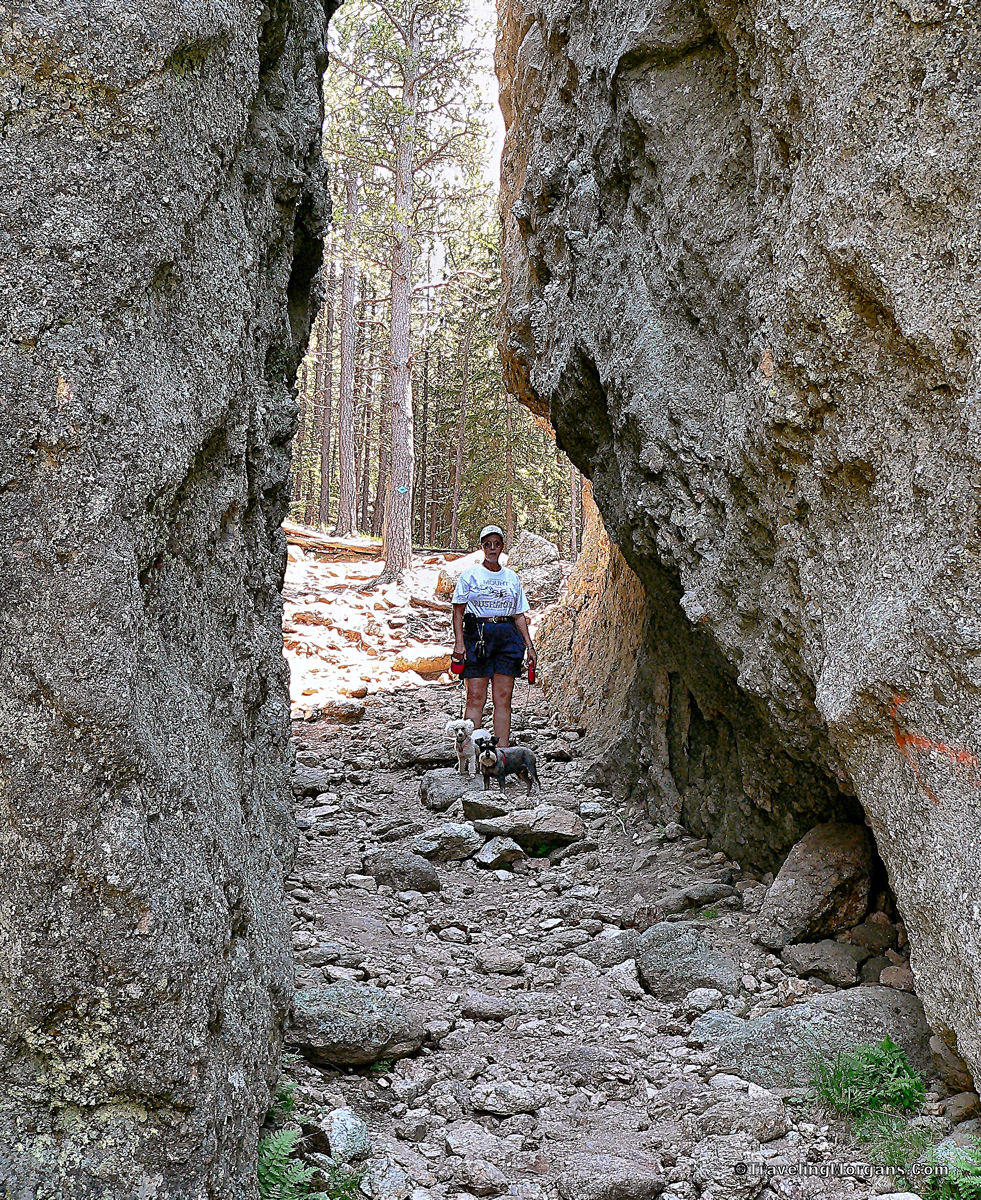 Roscoe and Harpo with Phyllis, Little Devil's Tower Trail, in the Needles section of Custer State Park SD 2005. Click any picture on this page for a larger version.