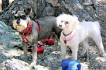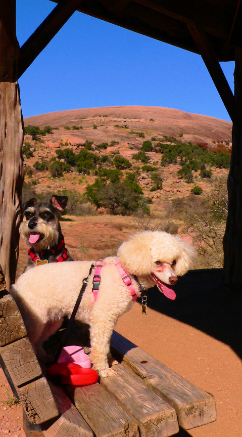 Roscoe and Harpo at Enchanted Rock State Natural Area in the Hill Country of TX 2007.