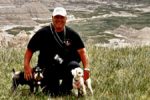 Roscoe with Harpo and Larry on Sheep Mountain Table, an undeveloped section of Badlands National Park in SD 2005.
