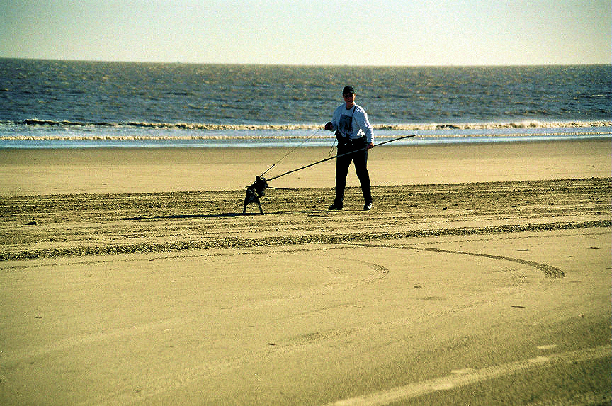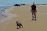 Roscoe with Paul at Padre Island National Seashore (2010).