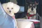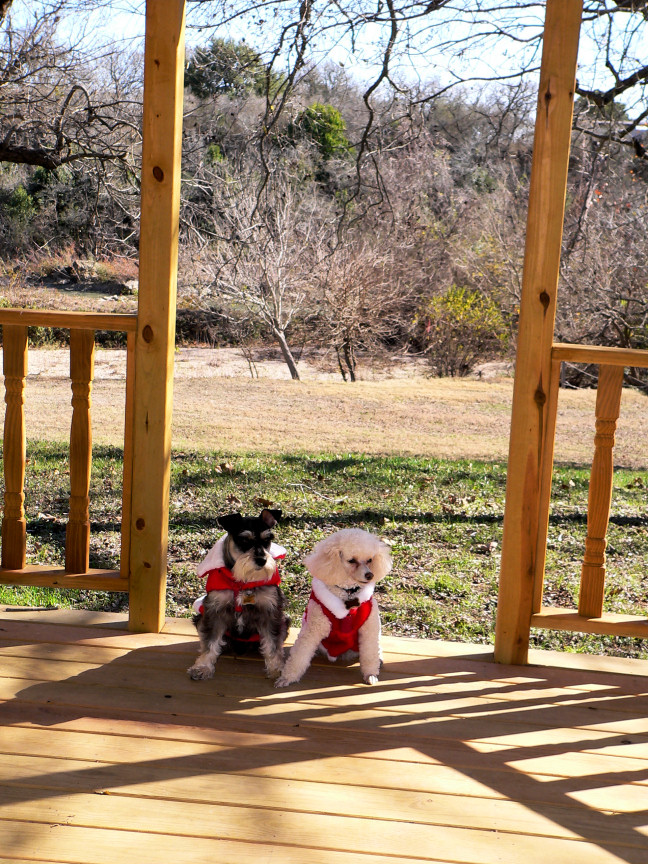 Our small dogs were Roscoe (dark Miniature Schnauzer) and Harpo (white Miniature Poodle, still with us) 2004.