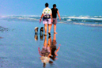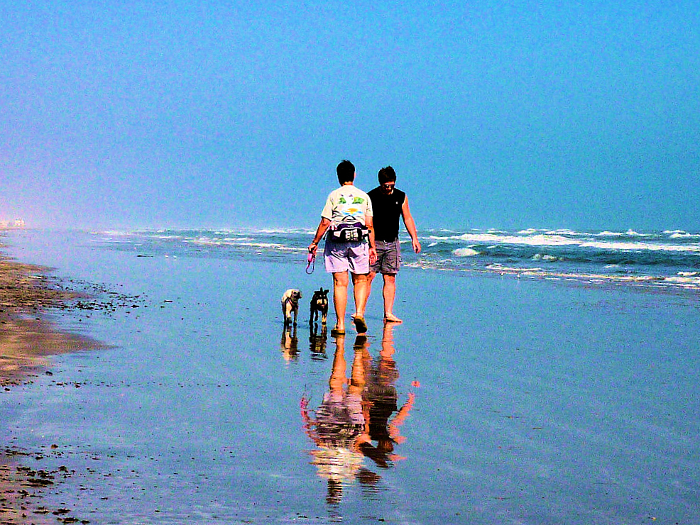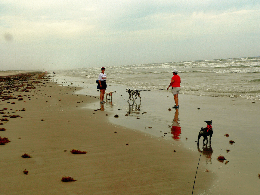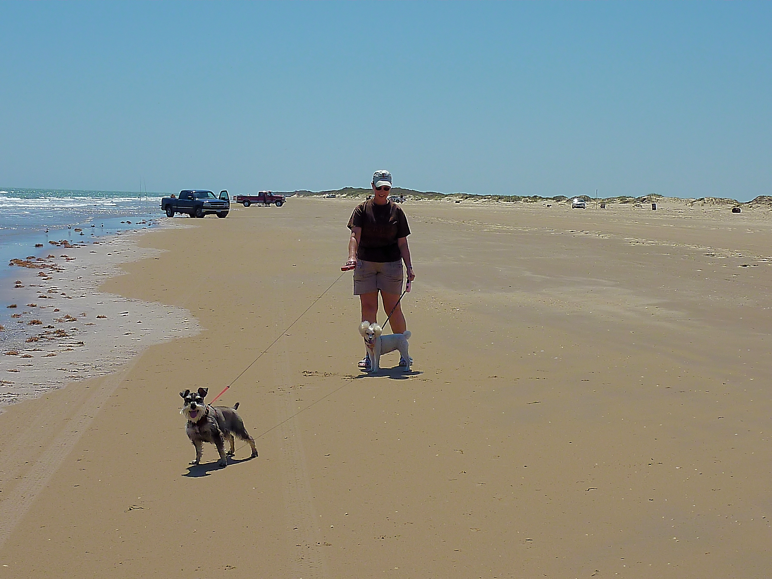 Roscoe and Harpo with Phyllis on Boca Chica Beach near the mouth of the Rio Grande, in South TX 2010.