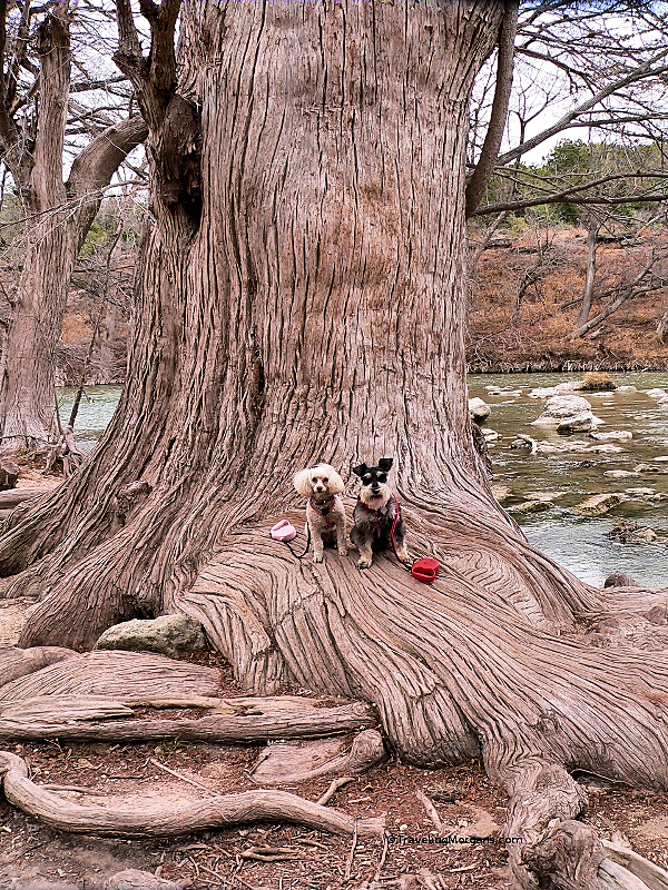 Roscoe&Harpo in Guadalupe River State Park Hill Country of TX 2009.