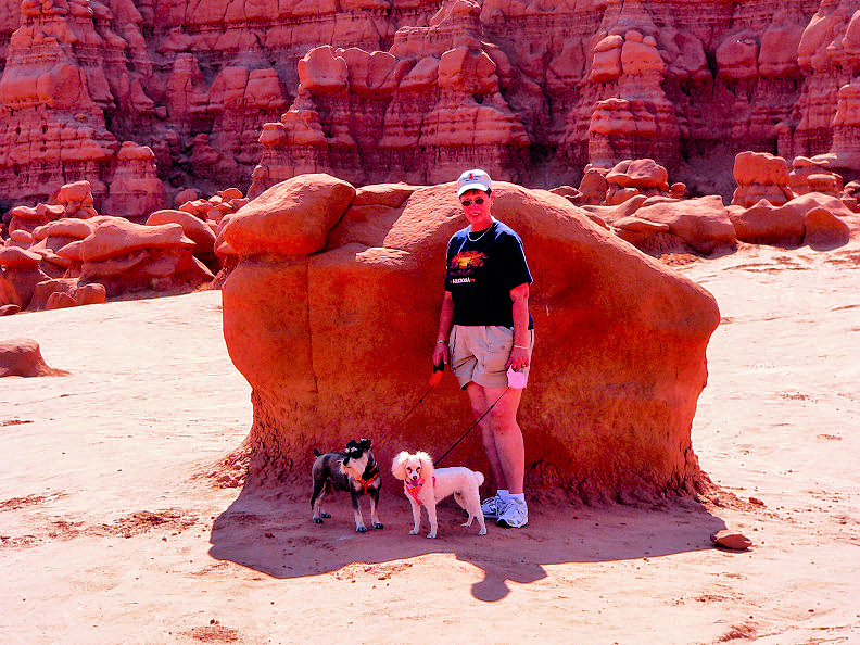 Roscoe and Harpo with Phyllis, Goblin Valley State Park in UT 2006.