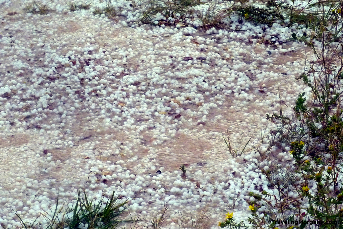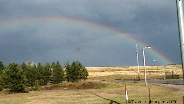 The Black Hills have extremes of weather. From winter at 30 below zero and heavy snow even in May and June to severe thunderstorms with hail (below) in summer. Where there are summer storms, there are also rainbows (right).