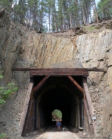 The main railroad, eventually a part of the Burlington Northern, was important to the Black Hills during the mining hey-day. This is now the Michelson Trail, which follows this old historic railroad line for over 100 miles. With its limited grades, it is good for walking or a bicycle trip. There is a fee that can be paid at the official trail heads or the Custer Chamber of Commerce. You will find interesting geology and fantastic scenery and old railroad tunnels plus get insights into the Black Hills, such as small scale mining that is still in operation.