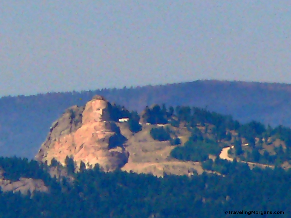 Crazy Horse is over 9 miles from Mt Coolidge. This picture from 2014 requires a steady tripod, a good camera, and a photgrapher that knows how to use them. Click the picture for a larger version or you can see an extra large version.