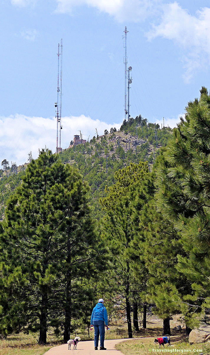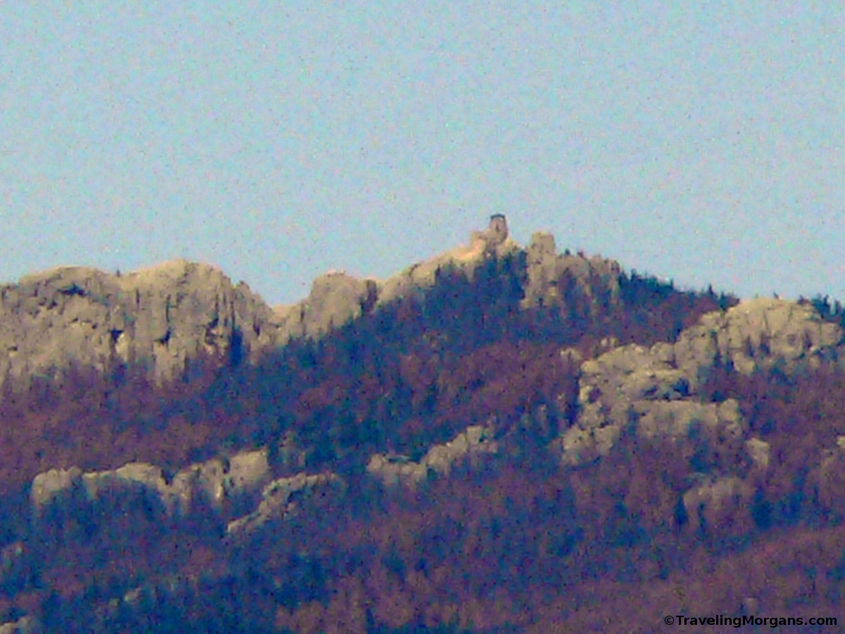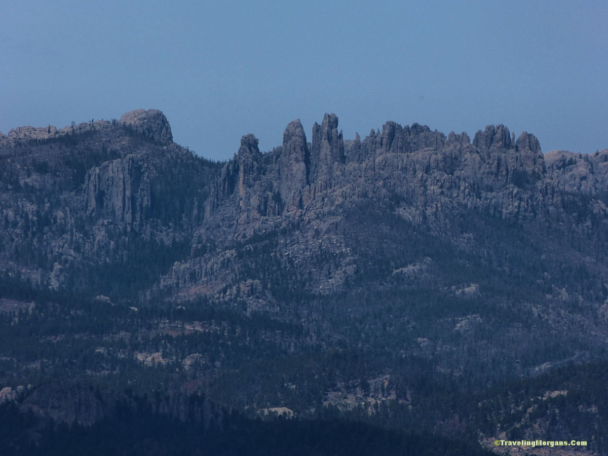 Harney Peak (7244 feet), the highest peak east of the Rocky Mountains, is generally accessible by foot trail, or a powerful lens. It is just outside Custer State Park.