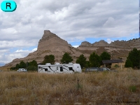 The picture shows our modern "covered wagon" and "team" parked at Scott's Bluff where we spent some
