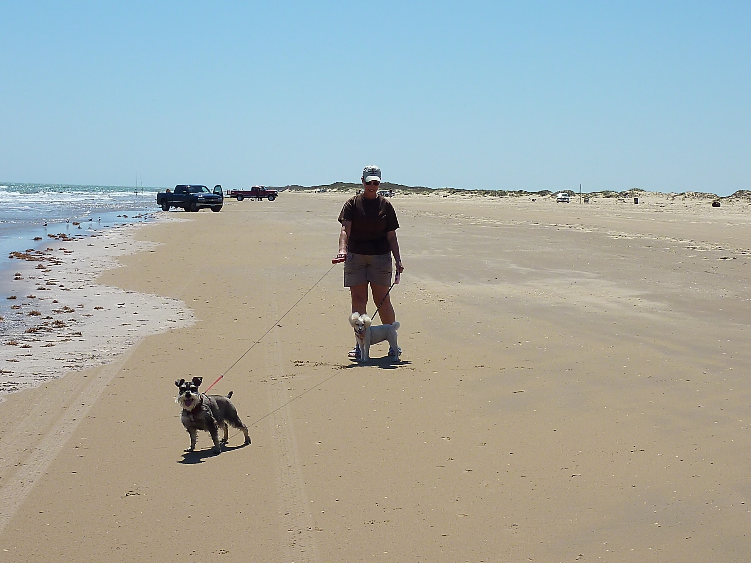 Boca Chica Beach is at the very tip of Texas, further south than South Padre Island, and extends to the mouth of the Rio Grande (left). This is a relatively unspoiled beach and dogs are not prohibited. It is a great place to spend a few healing hours. There are absolutely no facilities except a few trash cans and no fresh water.
