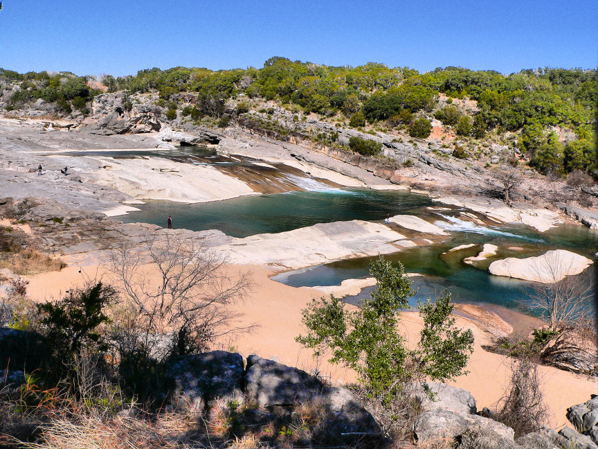 Pedernales Falls is a cascade over and through granite bedrock rather than a waterfall in the traditional sense. It is well worth a visit. Swimming in the area is a Texas tradition.