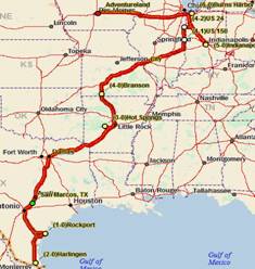 We finally took some time to enjoy some traveling. We took a round about route from Bowling Green KY to Waller TX ( near Houston) at right. Then on to San Marcos, TX. The enjoyable part was near Winding Stair Mountain in Oklahoma. |