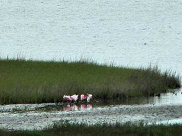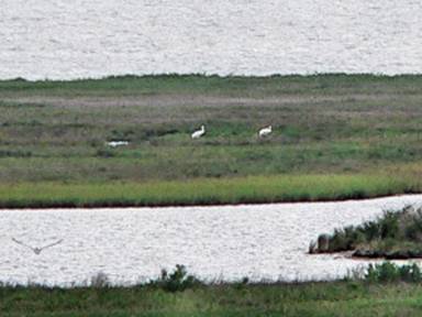TX: The Aransas National Wildlife Refuge north of Rockport in the Coastal Bend of Texas is a place where those of us not know for watching birds will be enchanted with the birds we see. The rare Whooping Crane, largest bird in North America, makes its winter home here (below) and must be watched at a great distance or watched from a boat. The Spoonbill Crane (right) and Wild Turkey (below right) are also quite interesting. There are MANY others. |