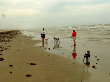 TX: Padre Island National Seashore near Corpus Christi Texas in the Coastal Bend of Texas is a great place to rejuvenate the spirit. On some days it is a great place to watch Pelicans. Our friends Marie Orewig and Blaze (Chocolate Dalmatian) joined us one fine day. |