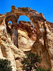 Southwest Utah has many more interesting sights to offer than we could believe. The Bureau of Land Management manages some very interesting land too remote and undeveloped to be good parks. Escalante Staircase National Monument is BLM administered, and is bigger than many Eastern states. Several scenic drives are partly or wholly included in Escalante Staircase, so we have combined all scenic drives with the BLM drives. Grosvner's Arch (left) is on Cottonwood Road. Utah highway 12 may be the most wonderful drive in this country. We have not yet seen another to top it, but we have certainly not seen everything. |