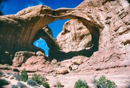 Moab hosts two national parks (Arches and Canyonlands) a state park with a wonderful view (Dead Horse Point) and nearly unlimited outdoor recreation opportunities. At left is Double Arch from Arches National Park. |